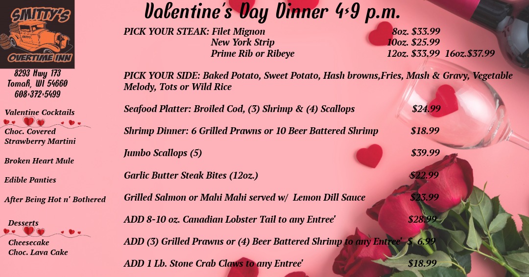 Valentine's Dinner MenuSpecials Jan 27-30th